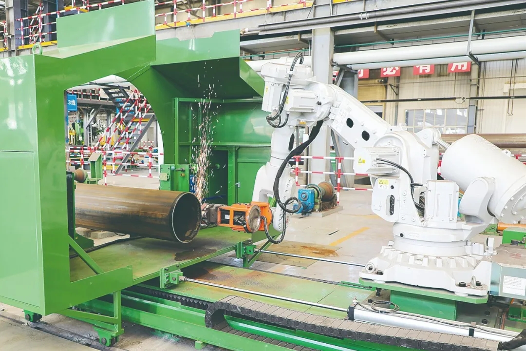 新能源管材生產(chǎn)線機器人正在修磨直縫管管端焊縫。通訊員 李少波 攝